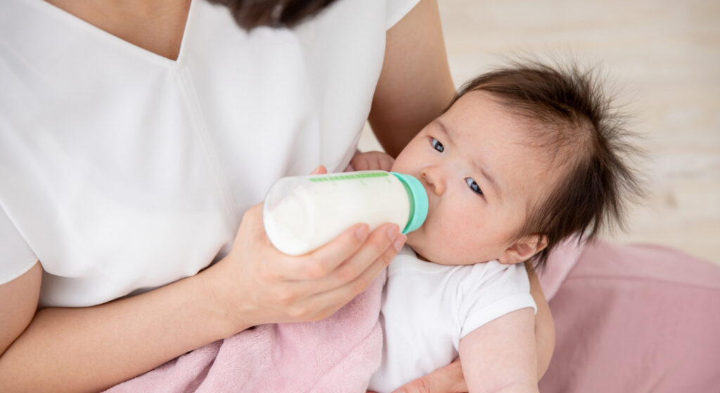 授乳やミルクを定期的に与え、乳児の水分補給を心掛けてください。